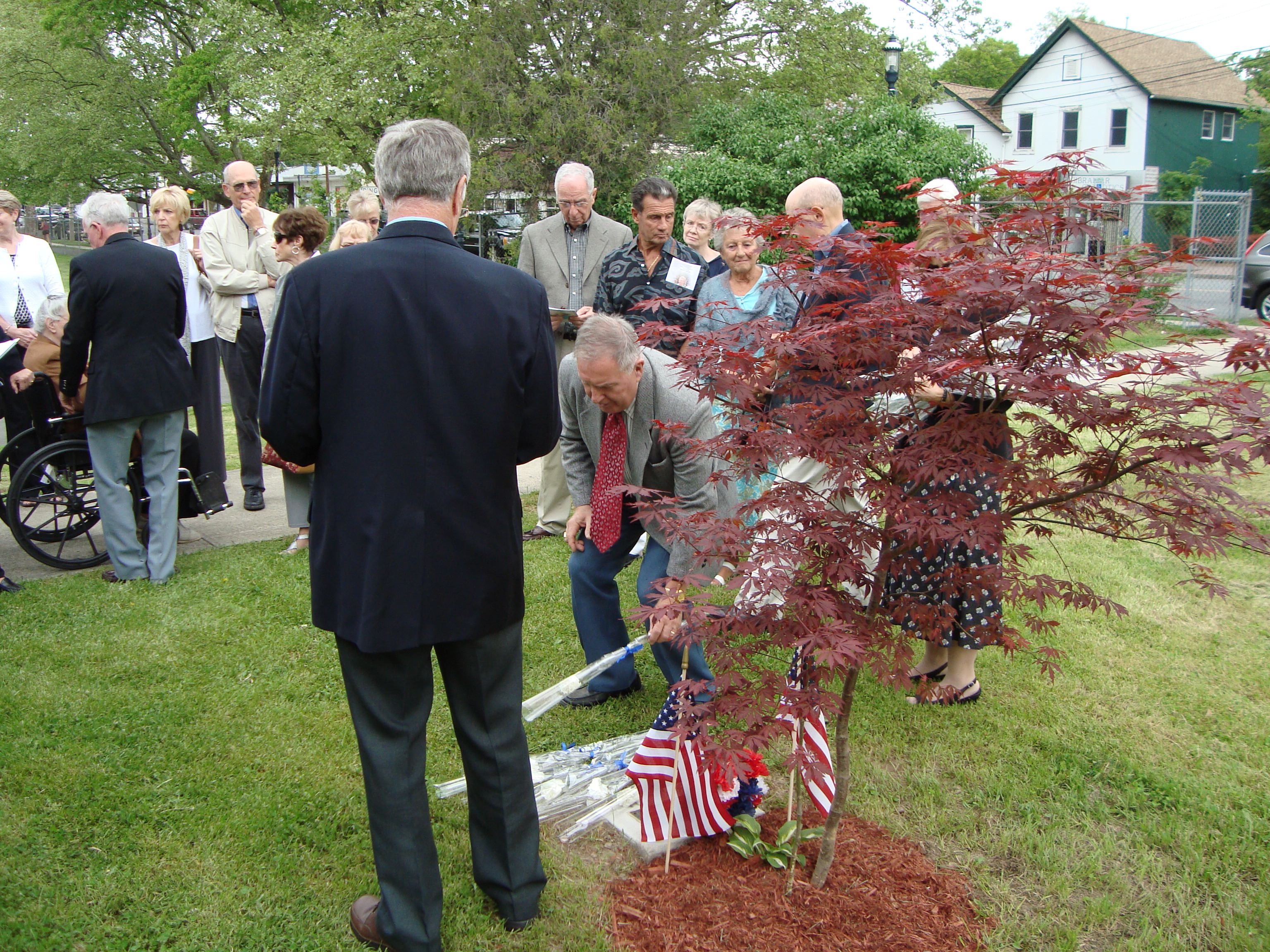 The ceremony continues with Pete placing a flower for another of our deceased classmates.
