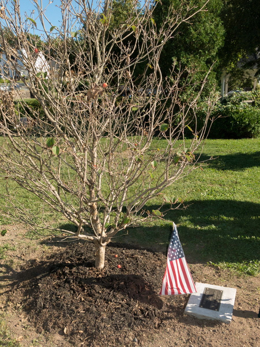 A tree in memory of deceased members of the class of 1957.