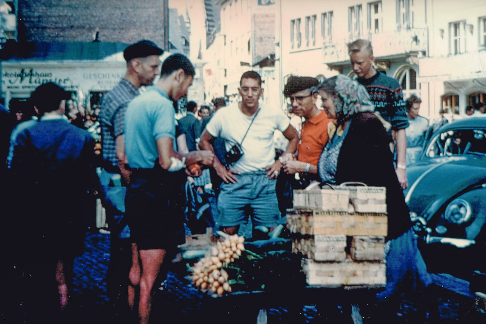 David Honigstock, Al Fischbein, Mr. Bristow and Bob Stokstad at the farmer's market.